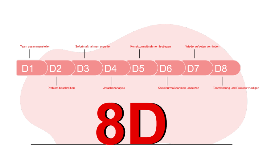 La méthode 8D (Eight Disciplines of Problem Solving) est une procédure structurée de résolution des problèmes, développée à l'origine par l'industrie automobile américaine, et plus particulièrement par Ford. La méthode se compose de huit étapes définies (disciplines) qui visent à identifier la cause d'un problème, à prendre les mesures appropriées et à garantir des améliorations à long terme.